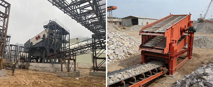 在石英砂生產(chǎn)流程中,原礦首先經(jīng)破碎、制砂處理后進(jìn)入篩分工序。石英砂由皮帶機(jī)輸送至圓振動篩給料口,在偏心激振力作用下,篩箱作圓周運(yùn)動,石英砂在篩面上篩面上拋起、擴(kuò)散。篩分后的粗顆粒、細(xì)顆粒等石英砂可以在篩網(wǎng)下方配皮帶機(jī),然后不同的皮帶機(jī)將不同粒徑的石英砂送到不同的生產(chǎn)環(huán)節(jié),實(shí)現(xiàn)連續(xù)性的生產(chǎn)流程。